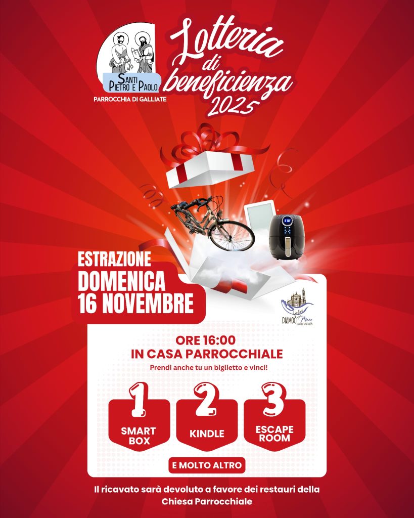 Anche quest’anno torna la Lotteria di Beneficenza organizzata dalla Parrocchia di Galliate.