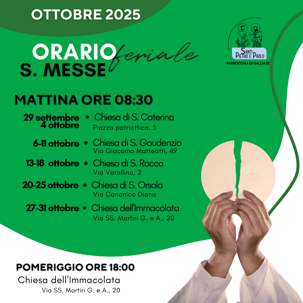 Orari delle celebrazioni eucaristiche (Messe) presenti in tutta la Parrocchia dei Ss. Pietro e Paolo in Galliate (NO)